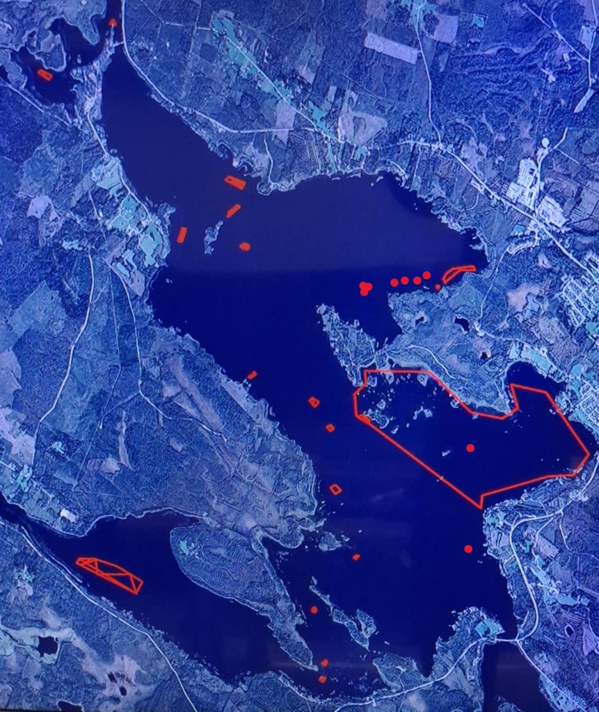 Stenar upp i dagen utan för Lill-Vorrviken Stort område grunt !